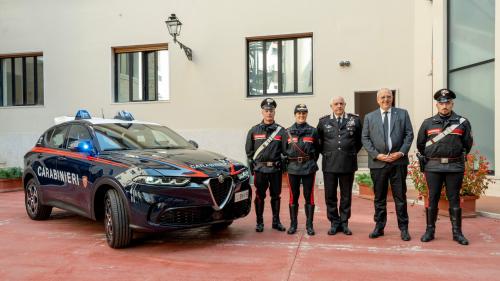 Η συμβολική τελετή έλαβε μέρος στα κεντρικά της Διοίκησης των Carabinieri με την επίσημη αποκάλυψη του περιπολικού που θα χρησιμοποιούν οι αστυνομικοί του σώματος, το οποίο βασίζεται στην υβριδική έκδοση της Alfa Romeo Tonale των 160 ίππων.