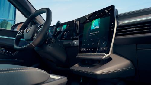 Στο εσωτερικό βλέπουμε επίσης τα αποτελέσματα της νέας σχεδιαστικής γλώσσας "sensual tech" της γαλλικής εταιρίας. Αυτό που κυριαρχεί είναι η «OpenR» σχεδίαση του ταμπλό με τις δύο υψηλής ευκρίνειας οθόνες: την 12,3 ιντσών που προορίζεται για τα μάτια του οδηγού και την κάθετης τοποθέτησης αφής των 12 ιντσών για το σύστημα πολυμέσων. Για τη βασική έκδοση η οθόνη αφής θα έχει διαγώνιο στις εννέα (9) ίντσες.