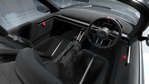 Το οδηγοκεντρικό εσωτερικό δίνει έμφαση στην αναλογική σχεδίαση, εγκαταλείποντας την κεντρική οθόνη του Vision concept. Υπάρχει παραδοσιακό χειρόφρενο πίσω από τον μοχλό του πεντατάχυτου κιβωτίου, ενώ οι περισσότερες λειτουργίες βρίσκονται στο τιμόνι. Κάποια διακόπτες αφής βρίσκονται στην κονσόλα, οι λαβές των θυρών έχουν αντικατασταθεί από υφασμάτινους ιμάντες, και τα καθίσματα έχουν έντονη πλευρική στήριξη.