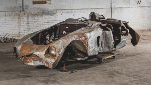 Αυτή η Ferrari 500 Mondial είχε αρχικά κατασκευαστεί ως εργοστασιακό αγωνιστικό της Scuderia Ferrari, αλλά αργότερα υπέστη αλλεπάλληλες ζημιές, φτάνοντας στο σημείο να θεωρείται χαμένη. Το 2004, η αποθήκη στη Φλόριντα όπου φυλασσόταν κατέρρευσε από τον τυφώνα Charley, καταστρέφοντάς την. Κι όμως, το παραμορφωμένο κουφάρι του πουλήθηκε το 2017 στη RM Sotheby’s για 1,8 εκατομμύρια δολάρια.