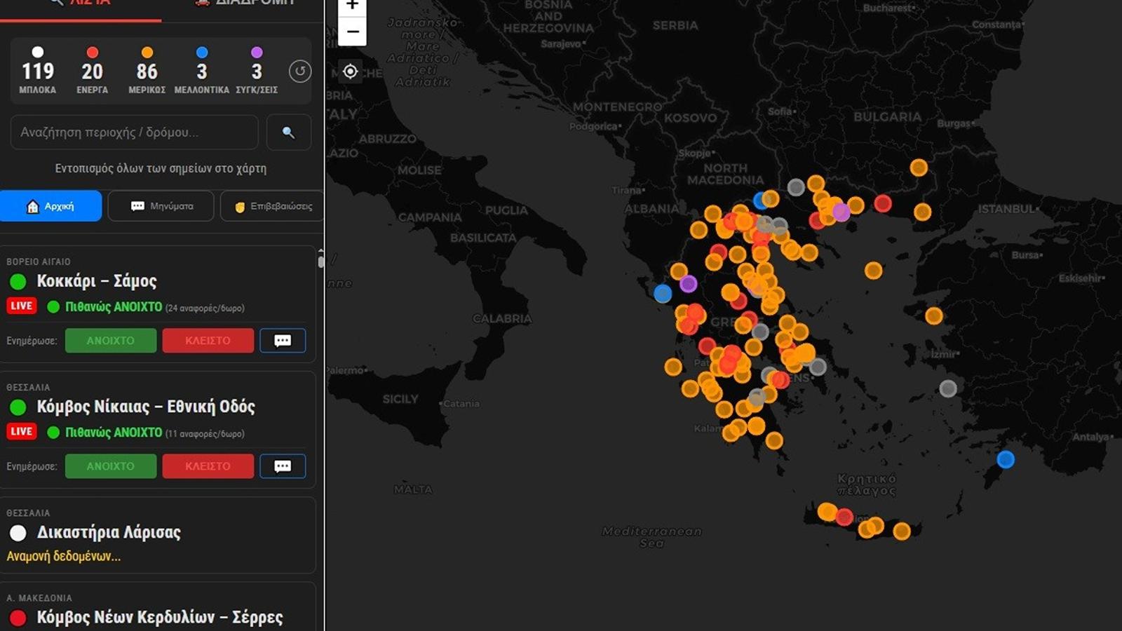 Κατά αυτόν τον τρόπο ο διαδραστικός χάρτης επικαιροποιείται, προσφέροντας μια πλήρη εικόνα για την κατάσταση στο εθνικό δίκτυο της χώρας, σχεδόν σε πραγματικό χρόνο.