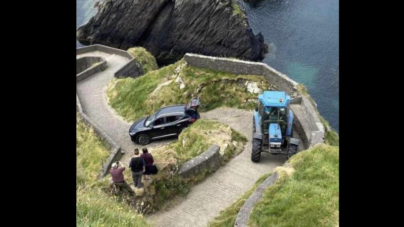 «Πάντα υπάρχει ένα (σ.σ. εγκλωβισμένο αυτοκίνητο) κάθε χρόνο. (σ.σ.Η εικόνα) είναι μια ευγενική υπενθύμιση ότι το τσιμεντένιο μονοπάτι προς το λιμάνι Dunquin Pier είναι μόνο για πεζούς και πρόβατα».
