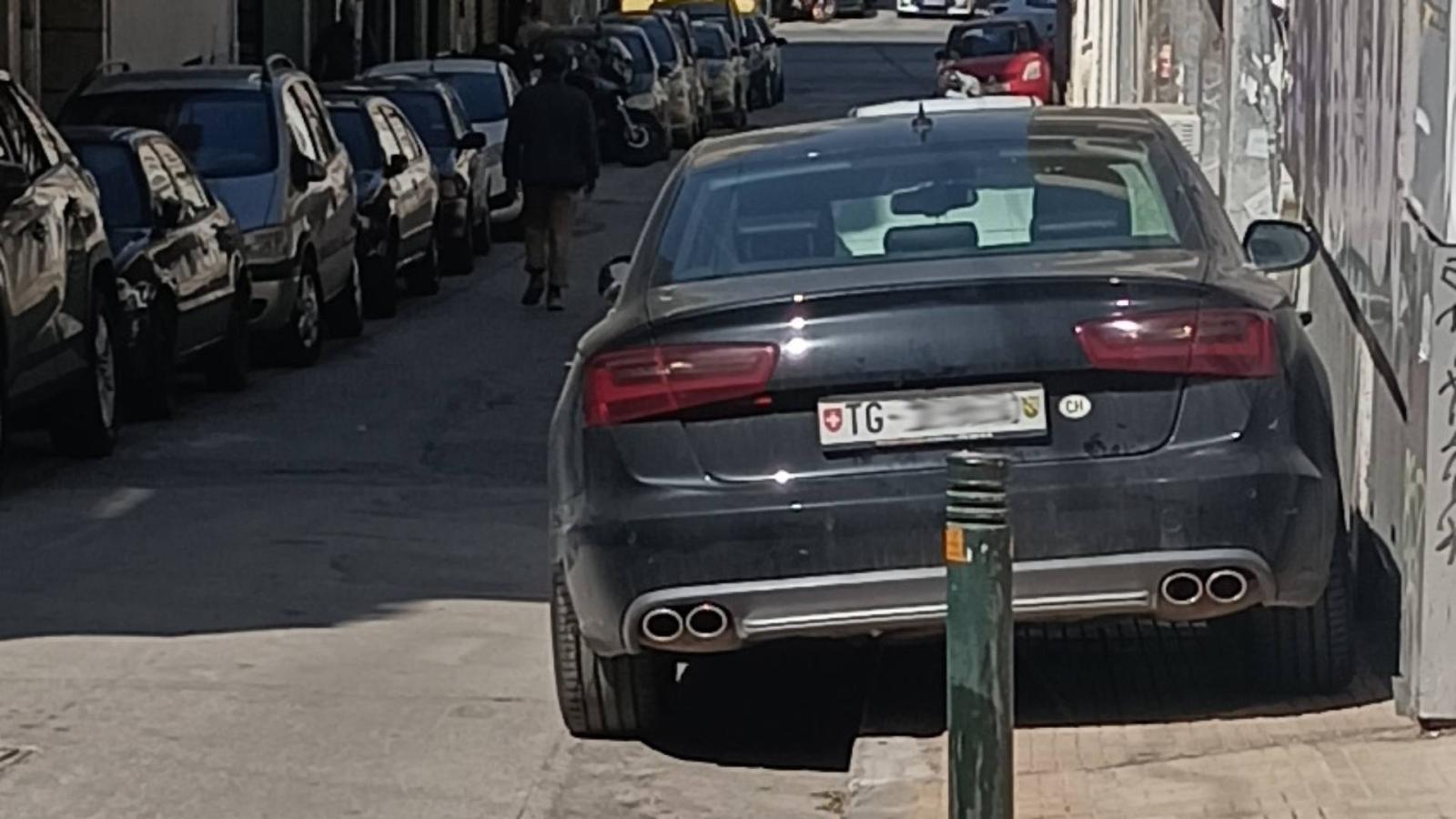 Τελευταίο ενδεικτικό παράδειγμα αποτελεί μία φωτογραφία που δημοσιεύθηκε στο group του Facebook "Είμαι Ελληναράς και παρκάρω όπου γουστάρω" και απεικονίζει ένα Audi με ελβετικές πινακίδες σταθμευμένο σε στενό δρόμο, ενώ έχει «πιάσει» όλο το πεζοδρόμιο, όπως μπορείτε να δείτε στην παρακάτω φωτογραφία.