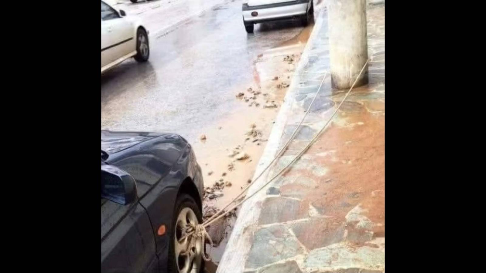 Η ελληνική πατέντα που «έριξε» το διαδίκτυο -Για ποιον λόγο έδεσαν αυτοκίνητο με σκοινί σε κολόνα