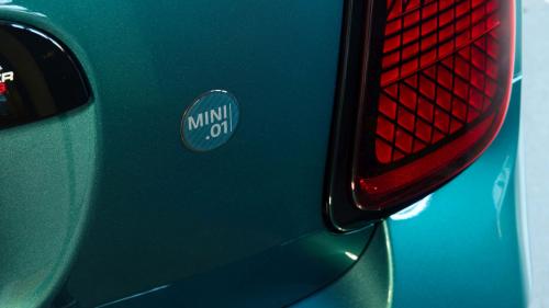Η διχρωμία επεκτείνεται και στο πίσω μέρος και συγκεκριμένα τον διαχύτη, ενώ οι καθρέφτες διαθέτουν διακόσμηση με μαύρες και λευκές ρίγες. Επιπλέον προσθήκες όπως η επιγραφή «MINI SUPER SPECIAL 001» πάνω από τους μπροστινούς θόλους και το σήμα MINI.01 στη θύρα του χώρου αποσκευών αποτελούν επιπλέον ξεχωριστές πινελιές.