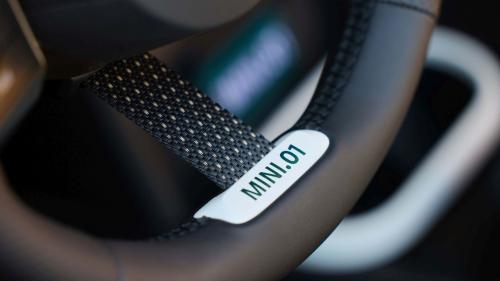 Οι αεραγωγοί, τα περιγράμματα των ποτηροθηκών και οι χειρολαβές θυρών έχουν φινίρισμα ματ λευκού, το οποίο επιτυγχάνει διακριτική αλλά αποτελεσματική αντίθεση. Το σήμα «MINI.01» βρίσκεται σε όλο το εσωτερικό, συμπεριλαμβανομένου του στοιχείου στο τιμόνι στη θέση «έξι η ώρα», της μονάδας ασύρματης φόρτισης αλλά και στα πατάκια.