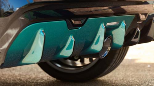 Οι πράσινες λεπτομέρειες στο ίδιο χρώμα συνεχίζονται στο εσωτερικό, με τη μοναδική απόχρωση να εμφανίζεται σε στοιχεία όπως τα ένθετα καθισμάτων, τη διακόσμηση της μπάρας διακοπτών, το διακοσμητικό λουρί του ταμπλό και το περίβλημα των ηχείων Harman Kardon.
