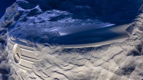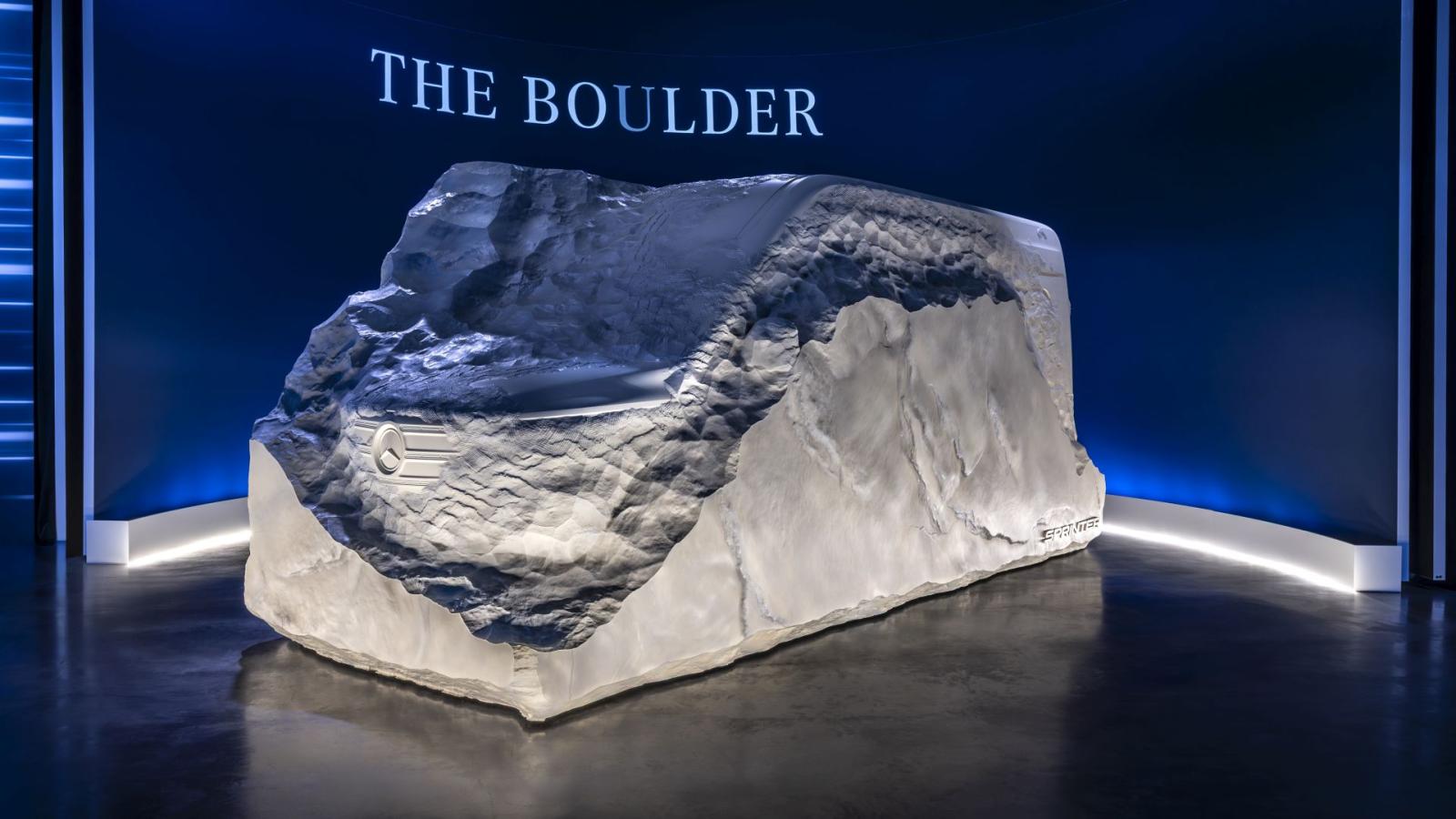 Στην προαναφερθείσα εκδήλωση, η Mercedes αποκάλυψε την πρώτη ματιά στο νέο Sprinter, μέρος του οποίο αποκαλυπτόταν μέσα από ένα γλυπτό από πέτρα. Δεν φαίνονταν πολλά, ήταν όμως εμφανής η χαρακτηριστική μάσκα. Το νέο Sprinter φαίνεται να έχει μακρύτερο και πιο χαμηλό καπό, θυμίζοντας παραδοσιακές θερμικές αναλογίες. Το μακρύ εμπρός μέρος μπορεί να υποδηλώνει και την ύπαρξη πρόσθετου αποθηκευτικού χώρου (frunk).
