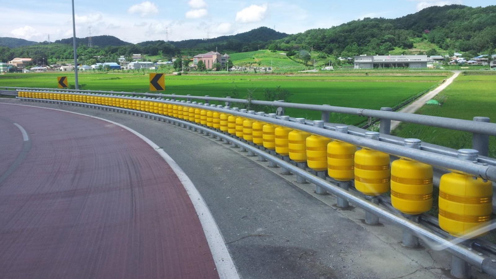 Οι κύλινδροι αποσβένουν τη δύναμη κρούσης και αλλάζουν την τροχιά των οχημάτων που προσκρούουν στις μπάρες, επαναφέροντάς τα στον δρόμο.