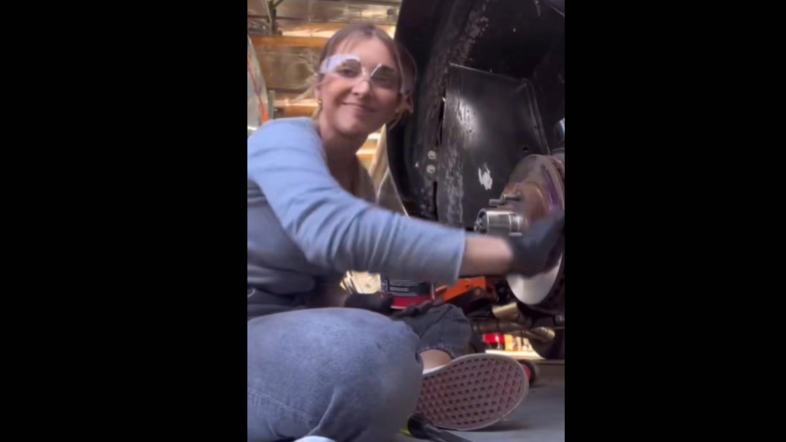 Φοράει μάλιστα τα προστατευτικά γυαλιά ανάποδα, λες και όλο το σκηνικό έχει στηθεί για να ιντριγκάρει τους μηχανικούς. Οι τελευταίοι δεν άργησαν να απαντήσουν με δικά τους βίντεο. Ένα συνεργείο μάλιστα, το Shaz Autos, μετέτρεψε το αρχικό clip σε διαφήμιση για τις υπηρεσίες του, γράφοντας στη λεζάντα: «Μην γίνεις σαν αυτή – έλα σε εμάς για φρένα χωρίς τρίξιμο». Το post ξεπέρασε τις 1,8 εκατ. προβολές, ενώ τα σχόλια πήραν φωτιά.