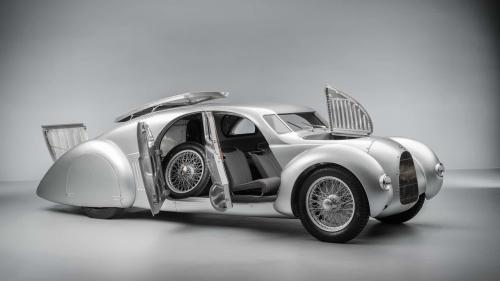 Πέραν των καλυμμένων πίσω τροχών, μία από τις ιδιαιτερότητες της Type 52 είναι ότι οι πόρτες της ανοίγουν αντίθετα από ό,τι έχουμε συνηθίσει σήμερα. Κι ακόμη, το εσωτερικό της έχει διάταξη με τρία καθίσματα, όπως θα είχε και η McLaren F1 εξήντα χρόνια αργότερα.