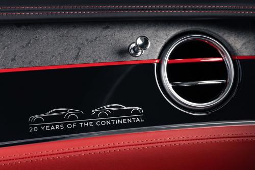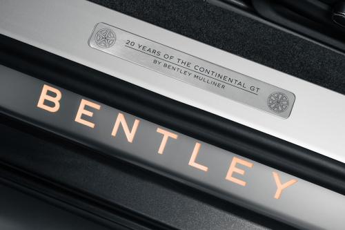 Από τις πολλές αναμνηστικές πλακέτες των 20 ετών της Continental GT, ξεχωρίζουν τα σχέδια με τις σιλουέτες της πρώτης και της τρίτης γενιάς του αυτοκινήτου στην πλευρά του συνοδηγού στο ταμπλό. Μια άλλη βρίσκεται στα μαρσπιέ, αναγράφοντας «20 years of the Continental GT».