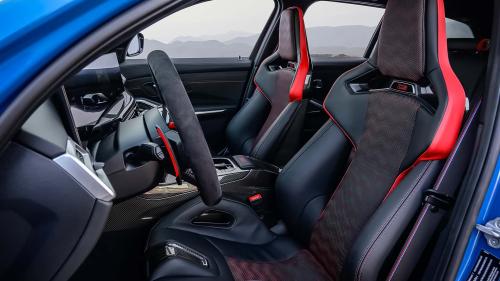 Μία ιδιαίτερη πινελιά είναι και τα κίτρινα LED φώτα ημέρας ενώ στο εσωτερικό, έχουν τοποθετηθεί μπάκετ καθίσματα με τμήματα από ανθρακονήματα, υλικό που συναντάμε ακόμα και στα paddles αλλαγής σχέσεων που βρίσκονται πίσω από το τιμόνι.