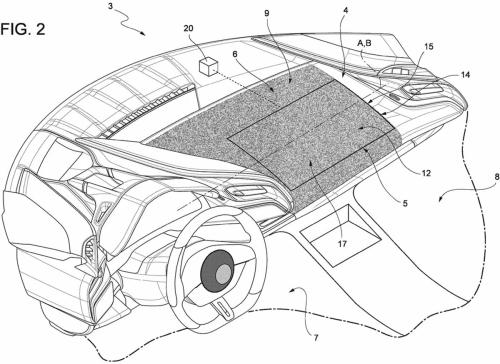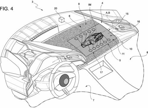 Μία από τις ιδέες αυτές αποκαλύφθηκε από τα σχέδια που κατέθεσε στο γραφείο πατεντών της Ιταλίας. Η ιταλική εταιρεία κατάφερε κάτι που δυσκολεύτηκαν να πετύχουν άλλοι κατασκευαστές: την ανάδυση μιας οθόνης μεγάλων διαστάσεων από το ταμπλό, και έπειτα την αναδίπλωσή της μέσα σε αυτό όταν ο οδηγός δεν τη χρειάζεται.