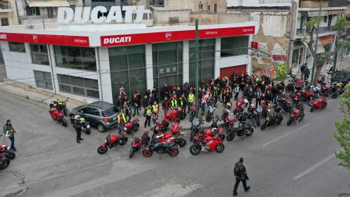 Στην Αθήνα, με αφετηρία το Ducati Athens, κομβόι με 70 μοτοσικλέτες και περισσότερους από 100 ενθουσιώδεις φίλους της μάρκας, αλλά και τη συμμετοχή του Ducati Official Club Hellas, πέρασε από τους Στύλους του Ολυμπίου Διός και το Ζάππειο για να κατευθυνθεί στην παραλιακή, διασχίζοντας την Αθηναϊκή ριβιέρα, με τελικό προορισμό την Ολυμπιακή Μαρίνα, στο Λαύριο.