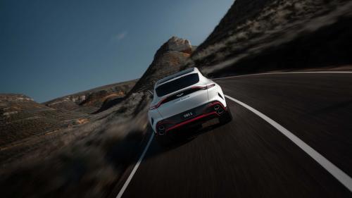 Περνώντας στο αισθητικό κομμάτι, υπάρχουν επεμβάσεις που μαρτυρούν πως πρόκειται για το πιο σπορ SUV της Aston Martin. Από την μαύρη γυαλιστερή γρίλια και το splitter, μέχρι τις ποδιές στο πλάι, τον τρομακτικό διαχύτη και τις διπλές απολήξεις των εξατμίσεων, που είναι σε κάθετη διάταξη, σε κάθε γωνιά του πίσω μέρους. Ανθρακονήματα μπορούν να τοποθετηθούν στα καλύμματα των καθρεφτών και στα μαρσπιέ των θυρών.
