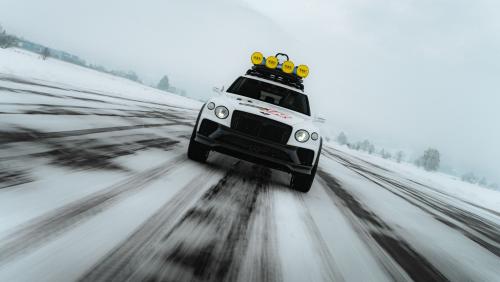 Για να γίνουν αυτά, τα φτερά έχουν μετακινηθεί προς τα έξω κατά 40 mm. Η Bentayga X έχει αποθηκευτικό χώρο στην οροφή (στην προκειμένη περίπτωση μεταφέρει ένα ηλεκτρικό kart της FAT Karting League) ο οποίος ανεβάζει το συνολικό ύψος στα 2,49 μέτρα, τέσσερις προβολείς για μεγάλες off-road αποστολές καθώς και διπλούς κρίκους ρυμούλκησης.