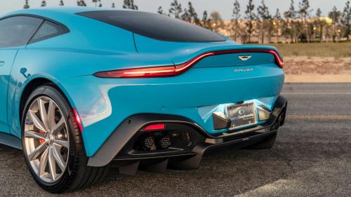 Η μόνη λεπτομέρεια της θωράκισης που είναι ορατή δια γυμνού οφθαλμού είναι τα μεταλλικά δικτυωτά καλύμματα των εξατμίσεων, και αυτό είναι καλό ώστε ο ανασφαλής χειριστής του αυτοκινήτου να περνά απαρατήρητος. Βεβαίως το έντονο γαλάζιο χρώμα δεν βοηθά και τόσο για αυτό το σκοπό, αλλά γενικώς αυτή δείχνει να είναι μια φυσιολογική Vantage. Μέχρι, τουλάχιστον, να ανοίξει η πόρτα και να αποκαλυφθεί το πάχος των κρυστάλλων.
