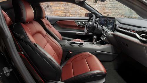 Στο εσωτερικό, το σαλόνι σε απόχρωση Carmine Red περιλαμβάνει αριθμημένη πλακέτα στο ταμπλό για να τονίζει ότι πρόκειται για μία… ιδιαίτερο Mustang.