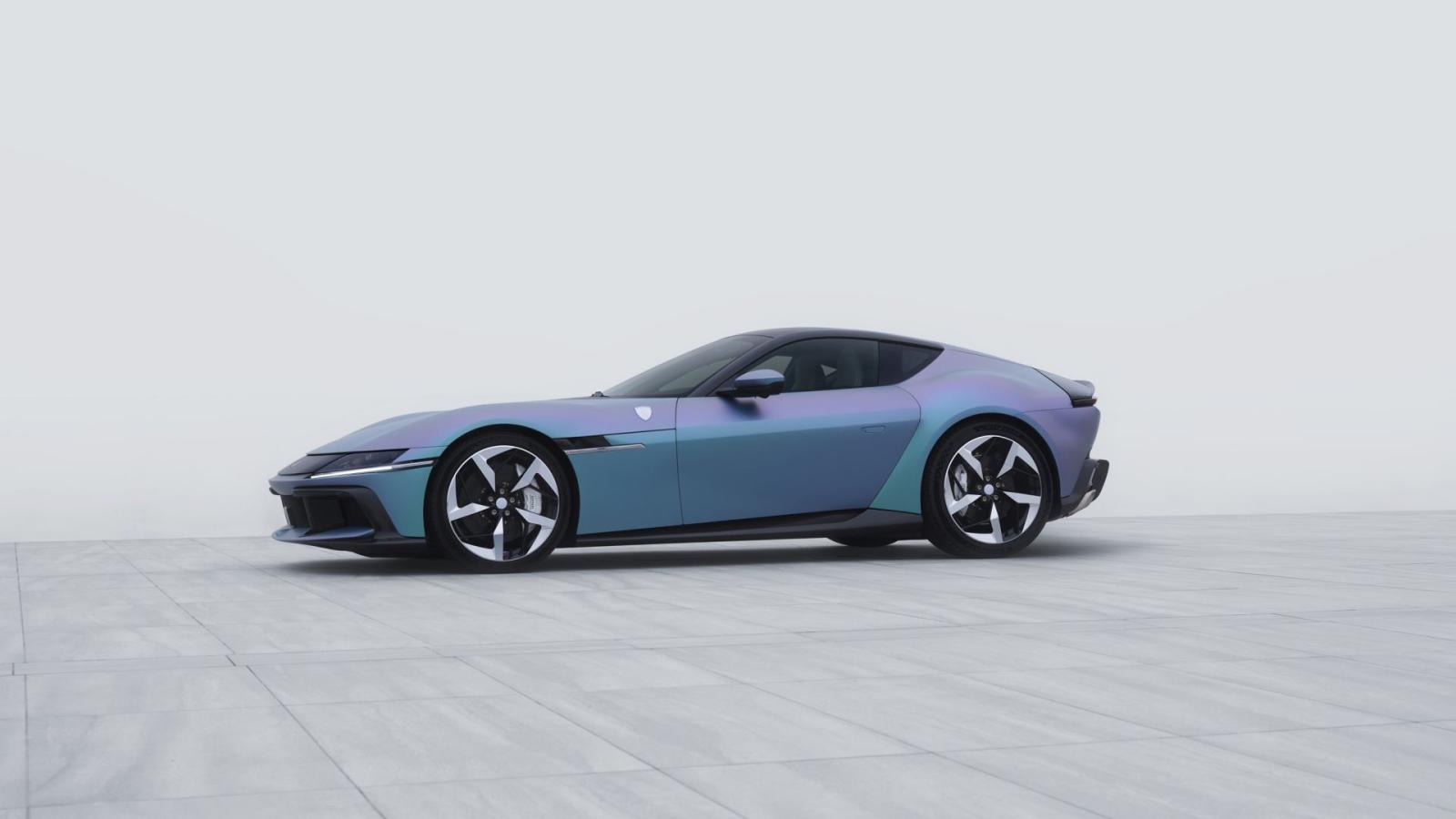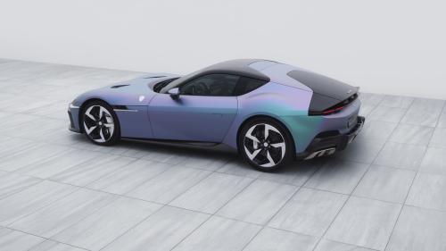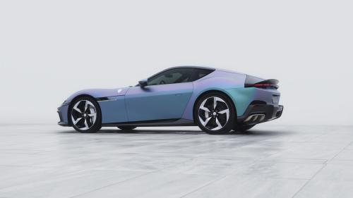 Η συγκεκριμένη 12Cilindri ξεχωρίζει χάρη στη νέα μεταβαλλόμενη βαφή Yoonseul, που είναι ειδικά εξελιγμένη για το συγκεκριμένο project. Το μοναδικό αυτό χρώμα αντλεί έμπνευση από την κορεατική παράδοση, την ιστορία και την πολιτιστική κληρονομιά της χώρας. με αναφορές στα κεραμικά celadon -με τις πολυάριθμες πράσινες αποχρώσεις τους- και τη γοητεία της κοσμοπολίτικης Σεούλ, που πάλλεται στους ρυθμούς της K-pop, της ηλεκτρονικής μουσικής και των neon φώτων των φουτουριστικών συνοικιών της. Το αποτέλεσμα είναι ένα ζωντανό, ιριδίζον φινίρισμα που μεταβάλλεται από πράσινο σε βιολετί με μπλε ανταύγειες, θυμίζοντας το λαμπύρισμα του ήλιου πάνω στη θάλασσα.