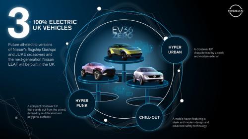 Αυτά τα τρία νέα ηλεκτρικά οχήματα αντιπροσωπεύουν το μέλλον και για τα τρία μοντέλα που κατασκευάζονται επί του παρόντος στο εργοστάσιο Nissan Sunderland: