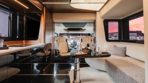 Όπως είναι φυσικό, δεν λείπει ούτε η πλήρως εξοπλισμένη κουζίνα, με επαγωγική εστία, φούρνο μικροκυμάτων, κανονικό φούρνο και ψυγείο πλήρους μεγέθους, καθιστώντας το όχημα αυτόνομο για μεγάλα ταξίδια.