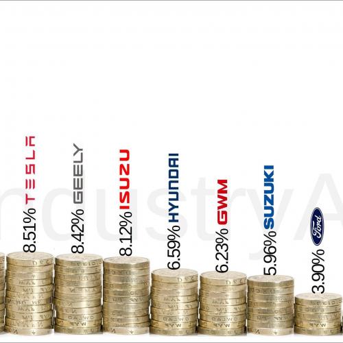Επιστρέφοντας στις επιδόσεις των αυτοκινητοβιομηχανιών το πρώτο εξάμηνο του έτους, στις τελευταίες θέσεις με μικρότερο περιθώριο κέρδους βρίσκεται ο όμιλος Renault-Nissan-Mitsubishi, η ινδικής καταγωγής Tata, η κινεζική JAC και η Honda.