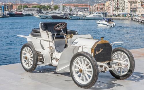 Ο Jellinek ζητά από τον επικεφαλής μηχανικό της DMG, Wilhelm Maybach, να κατασκευάσει ένα σύγχρονο, ισχυρό και ασφαλές όχημα που θα ξεπερνούσε τους περιορισμούς των πρώτων αυτοκινήτων χάρη στη μηχανολογική του καινοτομία. Η απαίτηση αυτή προκλήθηκε από το θανατηφόρο ατύχημα του οδηγού αγώνων Wilhelm Bauer, ο οποίος οδηγούσε ένα Daimler Phoenix 23 hp που είχε δηλωθεί από τον Jellinek στην ανάβαση Nice–La Turbie, στο πλαίσιο της Εβδομάδας Αγώνων της Νίκαιας το 1900. Το αγωνιστικό αυτοκίνητο του Jellinek συμμετείχε με το ψευδώνυμο “Mercédès”, το μικρό όνομα της πρωτότοκης κόρης του. Λίγο αργότερα, αυτό το όνομα καθιερώνεται ως επίσημη ονομασία της μάρκας για τα αυτοκίνητα της DMG.