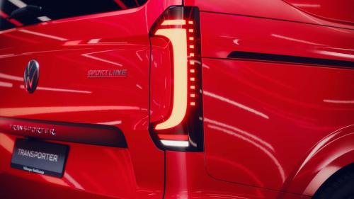 Το εντυπωσιακό περιτύλιγμα στην έκδοση Sportline περιλαμβάνει Matrix LED φώτα εμπρός, επιθετικό body kit με κορυφαίο στοιχείο το διπλό σπόιλερ οροφής που κάνει ξεκάθαρο πως δεν πρόκειται για ένα συνηθισμένο επαγγελματικό όχημα, μια κόκκινη λωρίδα στη γρίλια θυμίζει απευθείας τα Polo GTI και Golf GTI αλλά και αποκλειστικές ζάντες 19 ιντσών, που αντικαθιστούν το λογότυπο VW με σήμα Sportline.