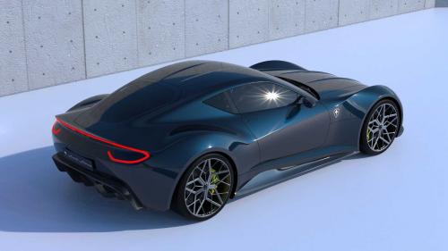 Από πλευράς διαστάσεων, το ιταλικό supercar δεν είναι ιδιαίτερα ογκώδες: έχει μήκος 4,6 μέτρων και πλάτος 1,96 μ., στο πρότυπο των κλασσικών ιταλικών grand tourers με τα μεγάλα και εκτεταμένα καπό, τις μυώδεις πλευρές, την κεκλιμένη προς τα πίσω οροφή. Για να είμαστε ειλικρινείς, δεν κρύβει τις επιρροές του τόσο από τη Ferrari 812 Superfast οσο και από τη Maserati Granturismo.