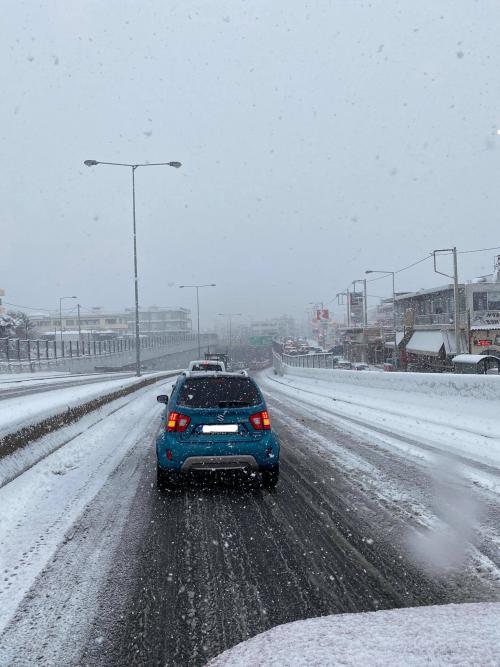 Δυσκολεύουν οι συνθήκες στον Περιφερειακό Υμηττού και σε τμήμα του Καρέα καθώς το χιόνι έχει αρχίσει να καλύπτει το οδόστρωμα, καθιστώντας επικίνδυνη την κίνηση των οχημάτων σε αυτό.