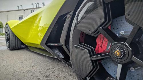 Το αιχμηρό ρύγχος του πρωτοτύπου έχει σαφείς παραπομπές στην Aventador, ενώ η έντονη γραμμή που διατρέχει το πλάι και οι διογκωμένοι θόλοι των πίσω τροχών ενισχύουν την εντύπωση δύναμης και μυϊκής έντασης. H τεράστια εμπρός πτέρυγα θυμίζει εξάρτημα εκχιονιστικού, έτοιμο να «καταπιεί» τον αέρα για να ψύξει τα φρένα και να παράγει κάθετη δύναμη.