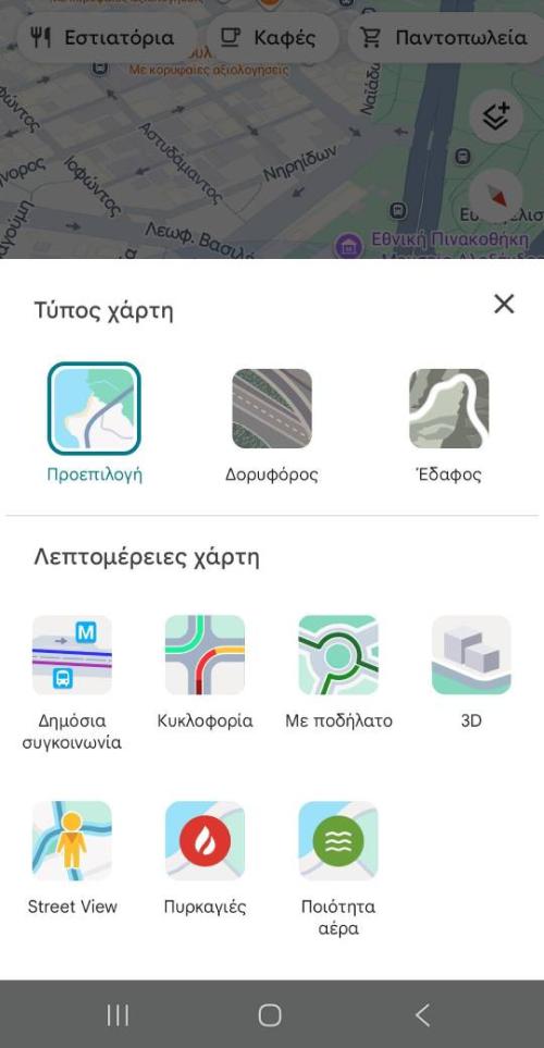 Το κουμπί των layers στην πάνω δεξιά γωνία έχει επίσης επανασχεδιαστεί, αφού παρόλο που διατηρεί το κυκλικό του σχήμα, τώρα ενσωματώνει το σύμβολο “+”, διευκολύνοντας έτσι την πρόσβαση σε επιλογές όπως η δορυφορική προβολή, πληροφορίες σχετικές με τα δρομολόγια των μέσων μαζικής μεταφοράς ή με την κυκλοφοριακή συμφόρηση στους δρόμους.