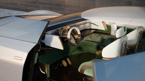 Αισθητικά, το μοντέλο έχει σχεδιαστεί ώστε να συνδυάζει φουτουριστικά στοιχεία, δημιουργώντας μια αναβίωση που μοιάζει με ένα retrowave μείγμα μιας Rolls-Royce Phantom και μιας C3 Corvette της δεκαετίας του ’70.
