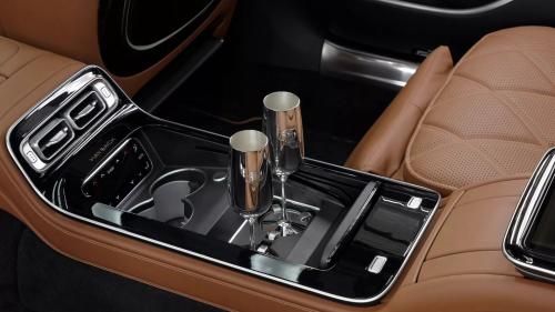 Οι ιδιοκτήτες θα παραλάβουν μαζί και ασημοεπιχρυσωμένα ποτήρια σαμπάνιας, χειροποίητο κουτί για τα κλειδιά και πολυτελές πατάκι πορτμπαγκάζ. Στον εξοπλισμό περιλαμβάνονται, μεταξύ άλλων, ηλεκτρικές πίσω πόρτες, τετραδιεύθυνση, πέντε οθόνες και ενεργή ανάρτηση.