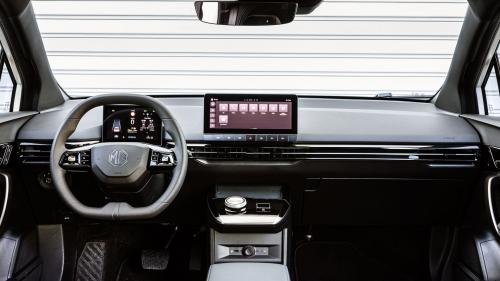 Καλαίσθητο είναι και το εσωτερικό, με τη σχεδιαστική προσέγγιση να είναι μίνιμαλ, παρέχοντας στην καμπίνα έναν αέρα διαχρονικότητας. Η ποιότητα κατασκευής είναι πολύ καλή, ενώ σε ψηφιακό επίπεδο έχουμε μια έγχρωμη οθόνη αφής 10,25 ιντσών του συστήματος πολυμέσων MG iSMART, μέσω της οποίας ο οδηγός μπορεί να παραμετροποιήσει όλες τις λειτουργίες του ηλεκτρικού συστήματος κίνησης, των συστημάτων υποβοηθήσης του οδηγού και των υπόλοιπων λειτουργιών του αυτοκινήτου.