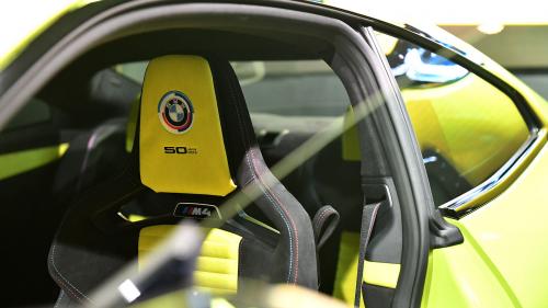 Τα προσκέφαλα των δύο καθισμάτων διαθέτουν ραφτό το έμβλημα της BMW M μαζί με τη φράση 50 Jahre (50 χρόνια), ενώ λεπτομέρειες στα καθίσματα και στις πόρτες είναι εμπνευσμένες από το ένδοξο παρελθόν και τη BMW 3.0 CSL του 1972.