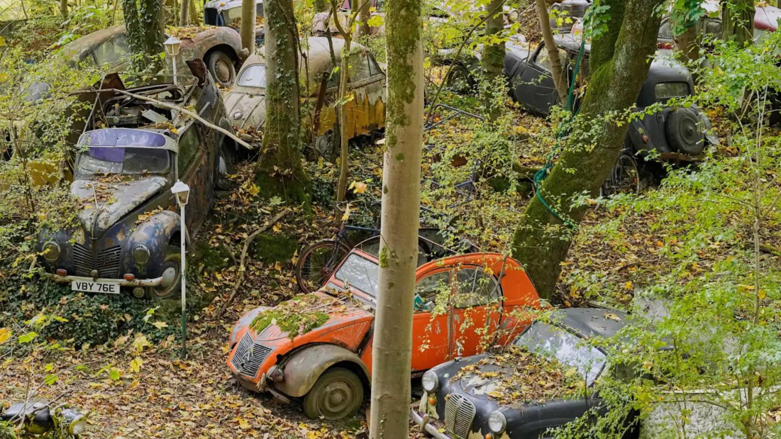 Ένα από τα πιο εντυπωσιακά – και ασυνήθιστα – «νεκροταφεία» αυτοκινήτων στον κόσμο βρίσκεται κρυμμένο μέσα σε ένα δάσος της Δυτικής Γερμανίας, στην περιοχή του Mettmann.