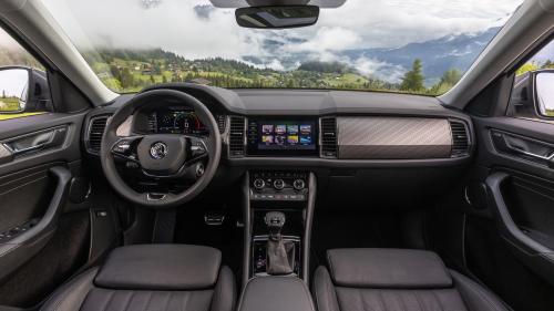 Στο εσωτερικό, η ανανέωση είναι αισθητή, χάρη στα νέα διακοσμητικά, τις πρόσθετες ραφές και το εκτεταμένο φάσμα λειτουργιών του ατμοσφαιρικού φωτισμού LED. Για πρώτη φορά το Kodiaq είναι διαθέσιμο με εργονομικά σχεδιασμένα καθίσματα με διάτρητο δέρμα και ηλεκτρική ρύθμιση πολλαπλών σταδίων, εξαερισμό και λειτουργία μασάζ. Διαθέσιμα επίσης είναι και καθίσματα, για τα επίπεδα εξοπλισμού Ambition και Style, με υψηλής ποιότητας βιώσιμες ταπετσαρίες από vegan, ανακυκλωμένα υλικά.