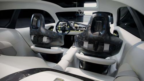 Ένα από τα πιο ιδιαίτερα στοιχεία είναι το κουμπί «+» στην κεντρική κονσόλα. Με την ενεργοποίησή του, το αυτοκίνητο αλλάζει μορφή: η ανάρτηση χαμηλώνει κατά 15 mm, ενεργοποιούνται αεροδυναμικά βοηθήματα εμπρός και πίσω, το συνολικό μήκος αυξάνεται κατά 100 mm και μια αεροτομή αναλαμβάνει να ενισχύσει την παραγόμενη κάθετη δύναμη.