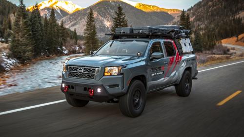 Στο ίδιο πάνω-κάτω μήκος κύματος κινείται και το Project Overland Frontier που αξιοποιεί ως πλατφόρμα το νέο αμερικάνικο pick-up της Nissan, για ακόμη πιο σκληροτράχηλες εκτός δρόμου αναζητήσεις. Και σε αυτή την περίπτωση η NISMO έχει τοποθετήσει το δικό της κιτ ανύψωσης της ανάρτησης, επίσης στα 50,8 χλστ., αλλά και διαφορετικά ψαλίδια που αυξάνουν τις διαδρομές της ανάρτησης, σε συνδυασμό με τα αμορτισέρ της NISMO. Διαφορετικά, σε σχέση με του στάνταρ Frontier, είναι και τα φύλλα σούστας στον πίσω άξονα, τα οποία αυξάνουν και το ωφέλιμο βάρος που μπορεί να μεταφέρει το Frontier, ενώ οι ζάντες έχουν διάσταση 17 ιντσών και τα ελαστικά είναι 285/70. Στον τομέα των βελτιώσεων της απόδοσης του κινητήρα η NISMO έχει τοποθετήσει το δικό της σύστημα εξαγωγής με χρωμιωμένη απόληξη για το τελικό της εξάτμισης.