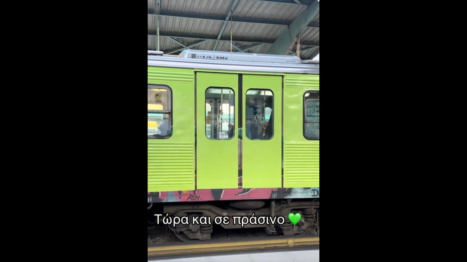 Ειδικότερα, σε βίντεο που έχουν δημοσιευθεί στα μέσα κοινωνικής δικτύωσης, καθώς και σε ανάρτηση του αναπληρωτή υπουργού Μεταφορών Κωνσταντίνου Κυρανάκη, εμφανίζεται ένας συρμός βαμμένος σε έντονη λαχανί απόχρωση να κινείται στη γραμμή, ανήκοντας στους συρμούς που έχουν καθαριστεί και αναβαθμιστεί από ειδικά συνεργεία στο πλαίσιο της εν λόγω προσπάθειας.