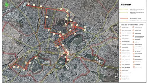 Το υπό σχεδιασμό δίκτυο θα συνδέει 12 σχολικές μονάδες, 10 σταθμούς Μετρό και ΗΣΑΠ, 18 πλατείες και πάρκα, 49 υφιστάμενους χώρους ή κτίρια στάθμευσης, καθώς και σημαντικούς πολιτιστικούς και εκπαιδευτικούς πόλους της πόλης.