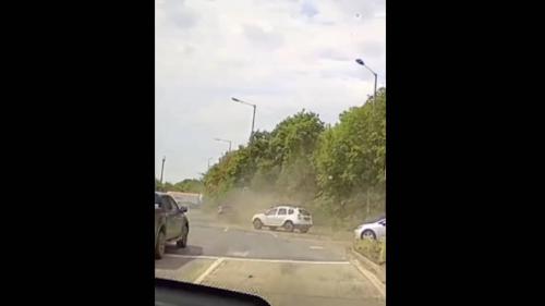 Το παρακάτω βίντεο προέρχεται τόσο από σταθερές κάμερες που ρυθμίζουν την κυκλοφορία, όσο και από μία κάμερα που έχει τοποθετηθεί στο ταμπλό ενός διερχόμενου αυτοκινήτου. Έπειτα από τη σύγκρουση, το αυτοκίνητο του Μάρσαλ βγαίνει εκτός δρόμου και προσκρούει σε δέντρα. Στο έτερο εμπλεκόμενο όχημα, οι πληροφορίες αναφέρουν πως οι επιβάτες τραυματίστηκαν σοβαρά.