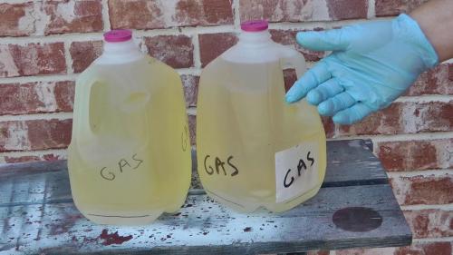 Το επόμενο βήμα είναι να μετατρέψει αυτό το λάδι σε καύσιμο. Για να το κάνει, χρησιμοποιεί τον κινητήρα ενός παλιού πλυντηρίου για να αναμείξει το λάδι με τα χημικά, ώστε να προκύψει καύσιμο κατάλληλο για χρήση στο αυτοκίνητό του.