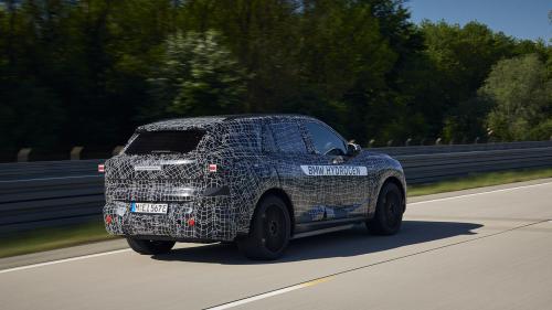 Παρά το βαρύ καμουφλάζ, διακρίνονται τα χαρακτηριστικά κάθετα «νεφρά» στη μάσκα, εμπνευσμένα από τη νέα iX3, αλλά χωρίς διαχωρισμένα φωτιστικά σώματα όπως στις X7 και XM.