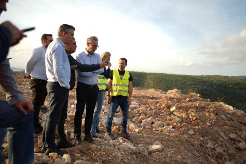 Στη συνέχεια, ο κ. Δήμας, μαζί με τον κ. Ταχιάο και τον κ. Αναγνώπουλο επισκέφθηκαν και το εργοτάξιο κατασκευής του οδικού άξονα Καλαμάτα – Ριζόμυλος – Πύλος – Μεθώνη.
