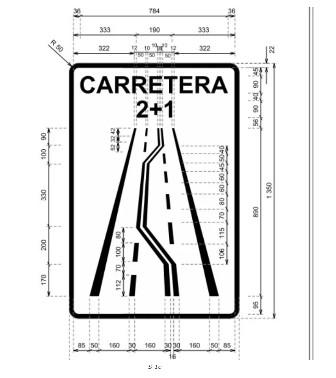 Καινούργια πινακίδα είναι και η S1-c που υποδηλώνει ότι ακολουθεί δρόμος τριών λωρίδων, με την κυκλοφορία να επιτρέπεται και στις δύο κατευθύνσεις. Η κεντρική λωρίδα χρησιμοποιείται για την διευκόλυνση των προσπεράσεων και δεσμεύεται εναλλάξ και για τα δύο ρεύματα κυκλοφορίας.
