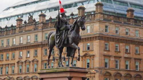 Στο επίκεντρο αυτής της ιδιότυπης ταυτότητας βρίσκεται η Γλασκώβη, μια πόλη που ξεχωρίζει για την τη βαριά βιομηχανική της κληρονομιά, την πολιτιστική της κουλτούρα και τη σύγχρονη αστική ζωή. Ανάμεσα στα πιο εντυπωσιακά αξιοθέατα της πόλης, το άγαλμα του Duke of Wellington ξεχωρίζει αναμφίβολα, λόγω ενός… κώνου που είναι σχεδόν μονίμως τοποθετημένος πάνω στο κεφάλι του.