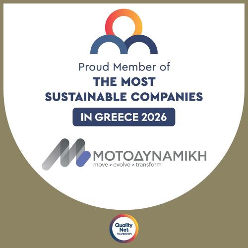 Ο Όμιλος ΜΟΤΟΔΥΝΑΜΙΚΗ συγκαταλέγεται στις πρώτες 43 εταιρείες που εντάσσονται στη λίστα The Most Sustainable Companies in Greece 2026, μια πρωτοβουλία του QualityNet Foundation, η οποία αναπτύσσεται υπό την αιγίδα των Υπουργείων Εθνικής Οικονομίας & Οικονομικών, Ανάπτυξης και Περιβάλλοντος & Ενέργειας, με την υποστήριξη των ΣΕΒ, ΕΒΕΑ και Ελληνικής Ένωσης Τραπεζών, καθώς και με τη συνεργασία του German Council for Sustainable Development.